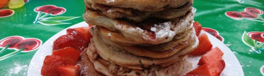 Laat de pancakes op middelhoog vuur bakken tot er belletjes aan de oppervlakte van de pancakes ontstaan. De randen moeten al een beetje stevig worden, de rest van het beslag bubbelig maar nog helemaal nat. Flip de pancakes om en bak ze nog ongeveer 1-2 minuten tot ze stevig voelen als je er op drukt. Maak zo net zoveel pancakes tot je beslag op is en stapel ze op het bord. Je kan ze met extra aardbeien, poedersuiker en eventueel wat yoghurt serveren. Wij hebben hier een eigen decoratieteam. Eet smakelijk!