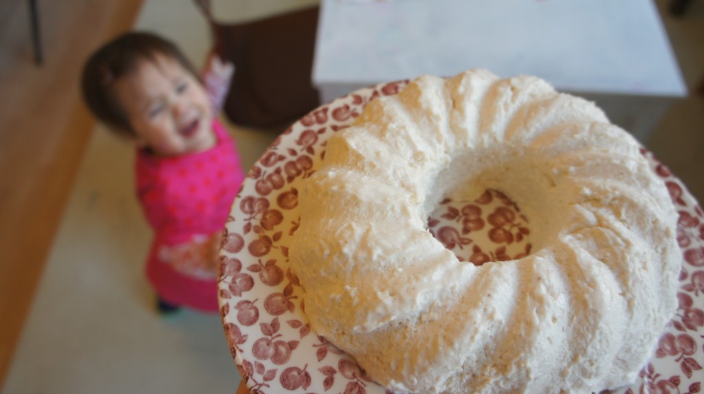 De Missus had een lichte obsessie met gelatine de laatste tijd. Op de doos van het snoephuisje waren de ramen gevuld met gelatinevelletjes als glas, en de Missus wilde er alles van weten (‘gekookte botten??’ in die trant zeg maar…) dus bedachten wij dat we er eens een gerechtje mee gingen maken. Zoals deze heerlijke, romige, suikervrije, exotische honing bavarois. Het recept komt uit één van mijn eerste kookboeken, gekocht toen ik net op kamers woonde en een huisgenootje had met wie ik mijn kookpassie kon delen. Het boek heet Desserts en de eerste druk stamt uit 1985. Er staan dus echt typische jaren ’80 recepten in, dat bestaat, geloof me maar. Maar dat maakt het niet minder lekker, en deze bavarois heb ik al vaak gemaakt en zit zo makkelijk in elkaar, het is gewoon geniaal. De Missus had er veel plezier in, en heeft de gelatine in alle stadia geproefd. Hij was in alle stadia vies, dat was wel de conclusie. Maar dat de bavarois overeind bleef daardoor, dat is toch heel bijzonder. Dus gelatine blijft voor haar aan de goeie kant van de lijn, en niet aan de verkeerde waar de gevreesde ‘kouwe kaassss’ (neus dicht) en ingeblikte vis (neus dicht en met je hand wapperen en je bord dramatisch aan de andere kant van de tafel zetten) staan.