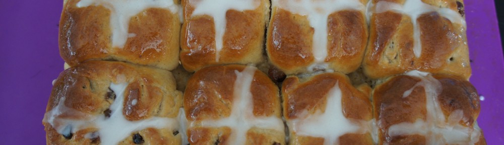 In Nederland zijn deze kruidige krentenbroodjes (traditioneel Angelsaksische paasbroodjes) volgens mij niet echt bekend, hoewel je soms bij de bakker puntjes met specerijen en sukade kan kopen die qua smaak redelijk overeenkomen. Ik leerde ze kennen in Canada, toen ik bij het specerijenwinkeltje op Granville Island Market in Vancouver werkte. Ik had een collega die bijzonder trots was op zijn Britse achtergrond, inclusief de droge humor en een voorliefde voor sterke, zwarte thee. ‘The British empire was build on cups of tea’ declameerde hij iedere keer als hij een kopje thee bij het winkeltje aan de overkant ging halen. En dat was vaak. Omdat eten een gedeelde passie was van alle werknemers in de winkel (anders ging je er echt niet aan beginnen, verschrikkelijk slecht betaald, vreselijke uren, potentaten als baas) brachten we vaak dingen die we thuis hadden gemaakt voor elkaar mee om te proeven (mijn Indonesische hapjes vonden altijd gretig aftrek, de zuurkool durfde niemand aan te raken). En zo kwam het dat de theedrinkende Canadees op een dag met hot cross buns aankwam, door zijn vriendin (vast ook een troste Angelsaksische) gebakken. Man, dat was lekker! De specerijen, allemaal van prachtige kwaliteit want dat wisten we wel te vinden natuurlijk, de sukade, het glazuurstreepje… Alles versterkte de kracht van dit kleine hapje brood. Ik was verkocht, zeker met een kopje loeisterke zwarte thee met melk erbij. Omdat de Missus niet van sukade houdt heb ik dit keer alleen rozijnen gebruikt, maar je kan natuurlijk altijd een variatie van gedroogde vruchten gebruiken. Mocht je nou graag ovenverse broodjes als ontbijt willen serveren, maar niet al 3 uur vantevoren op moeten staan om ze op tijd klaar te hebben (wie zou dat wel willen, vraag ik mij af?) dan kan je het deeg maken de avond van tevoren maken en de eerste keer laten rijzen. Als je de buns hebt gevormd en voor de tweede keer gaat laten rijzen, plaats ze dan in de koelkast. Ze rijzen nu veel langzamer en krijgen daardoor ook een iets andere structuur, licht knapperig en een tikkeltje zuur. Heerlijk! Zorg dat ze minstens 10 uur kunnen blijven staan, neem ze uit de koelkast en zet de oven aan om voor te verwarmen. Dan maak je ze verder af zoals aangegeven in het recept hieronder.