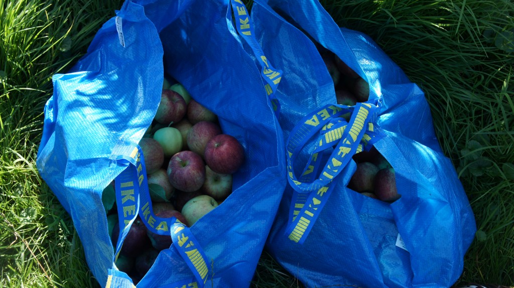 Toen de Missus werd geboren heeft mijn schoonmoeder mij zover gekregen om een spaarrekening voor kindjes te starten met als bonus een adoptie-appelboom. Die boom staat op de Olmenhorst, een landgoed in Lisserbroek. Het is er prachtig en heerlijk, en het is zo’n leuk idee om ieder jaar écht je eigen appels te kunnen plukken, aan je eigen boom. Een beetje terug naar de natuur, weg van het gejaagde stadse leven. Lekker biologisch shoppen in de Landgoedwinkel, een kommetje pastinaaksoep erbij en natuurlijk appeltaart, appelsap, appelbrood etcetera. Maar de laatste jaren werd het steeds drukker op de Olmenhorst. Tijdens het Oogstfeest draaiden er zweefmolens, stonden er lange rijen voor de toiletten, kassa’s en de koffie, riepen honderden hippe vaders en moeders zonder z om hun kinderen ‘Spyker, niet so dicht bij die sweefmoleh’ en werden wij steeds stiller. So much voor terug naar de natuur. Om het feestgedruis te omzeilen gingen we dit jaar in ieder geval niet meer in het weekend en ook *en vooral* niet tijdens het oogstfeest naar onze appelboom, en dat was een wijs besluit. We hadden een heerlijk rustige en zonnige dag tussen de appelbomen, picknick in het gras, grote oogst, korte rij. En met 20 kilo appels weer naar huis.