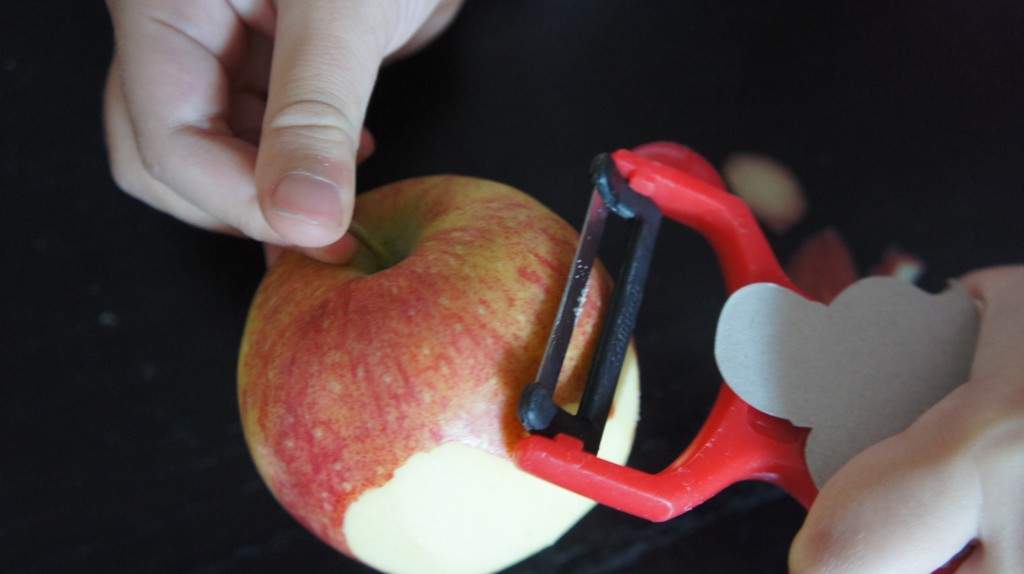 Schil de appels, snij ze in kwarten en snij het klokhuis weg. Snij ze hierna in dunne (2-3 mm dikke) plakjes. Rasp de schil van de citroen en doe dit bij het eigeel. Pers de citroen uit, besprenkel de appel met een beetje sap en meng de rest door het eigeel.