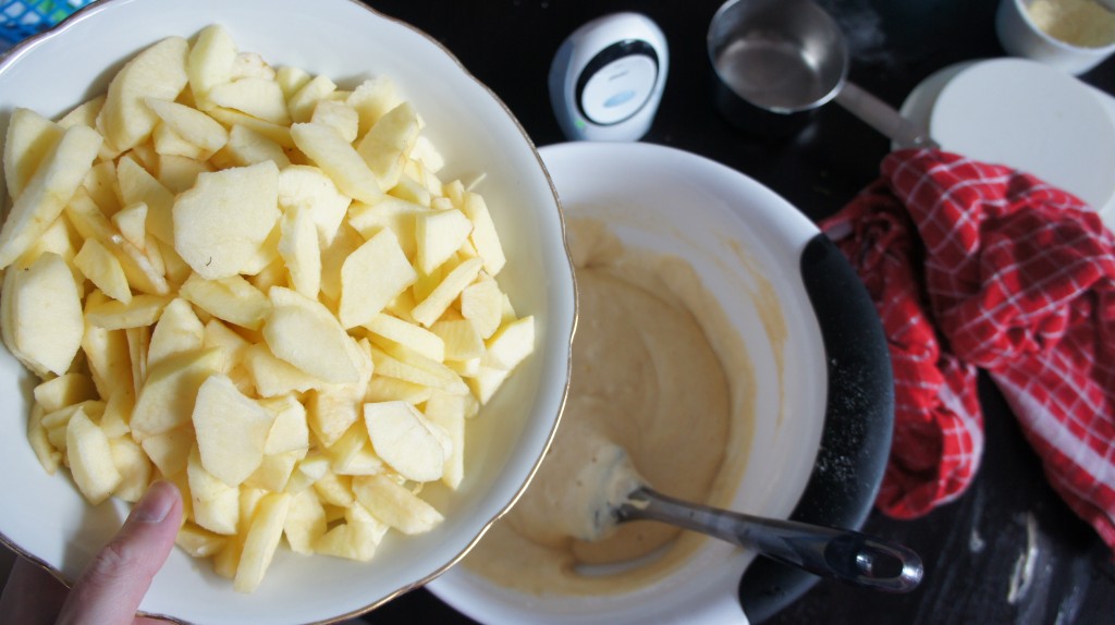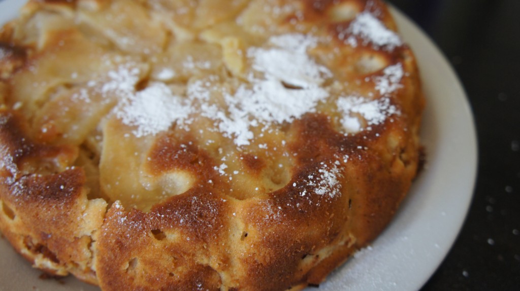 Ook de appels smaken dit jaar niet zo zoet als we gewend zijn, na een troosteloze somer zomer dus we verwerken ze snel en vakkundig tot moes en taart. Vooral veel taart. En dan is het wel lekker om wat te kunnen variëren, daarom bakten wij ook weer eens een Joodse appeltaart; oftewel kosher, omdat er geen melk of boter in gaat. Dat mag niet met ei, denk ik dan, want vlees zit er verder niet in gelukkig- maar ik ben niet gehinderd door enige kennis dus breng mij gerust op de hoogte als ik ernaast zit.