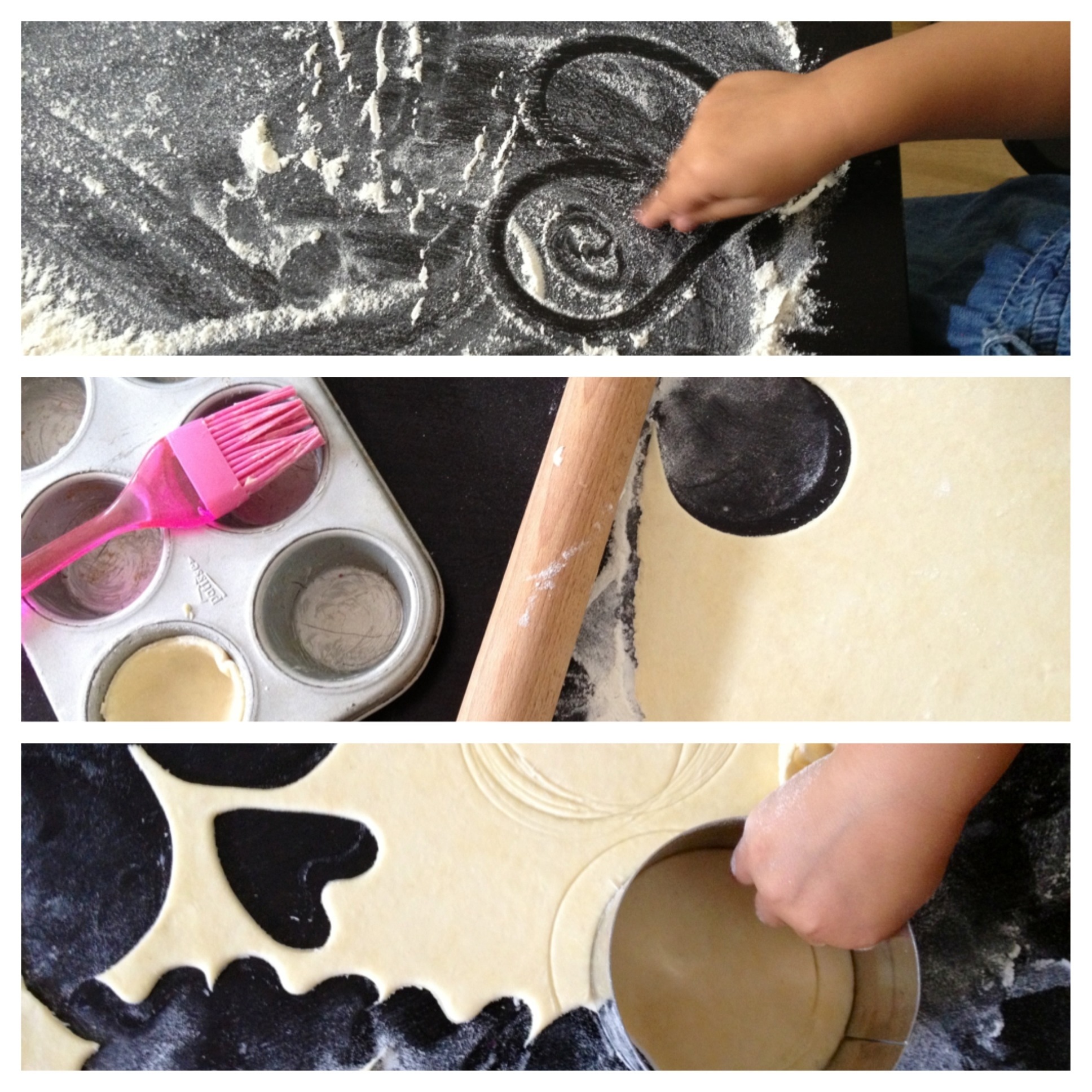 Het leven zit niet altijd mee. Tegenslag genoeg voor alle mensen en dus ook voor Mama en haar mini-chefs. Juist daarom proberen we echt van iedere dag een feestje te maken, en van elke maaltijd iets bijzonders. Zo kunnen we onszelf een beetje kietelen en vrolijk houden en voor we het doorhebben is het leven weer meer zon en minder regen. Daarom deze heerlijke lunchpasteitjes. Je hebt mensen die een pastei een pie noemen. En meerdere pasteitjes- juist, pies. Die mensen hebben teveel gedronken denk ik. Pastei is een prachtig woord, en een prachtig gerecht. Vul deze met ieder zomerfruit wat je lekker lijkt: aardbei, kers, blauwe bessen, perzik. Wij maakten zowel mini-pasteitjes van dit recept als een paar handpasteitjes. Die laatste zijn ook handig meenemen voor een zomerse picknick. Het deeg is heerlijk romig door de boter en tegelijk fris dankzij de karnemelk. Dit recept maakt 10 kleine (muffinvorm grootte) pasteitjes.